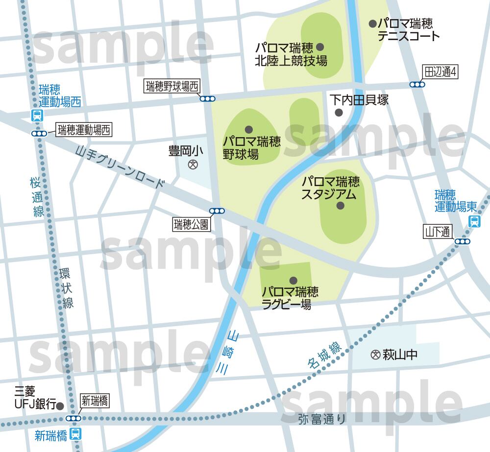 本データは、印刷物、Webコンテンツ、映像内で、一般的なアクセスマップとして利用する限りは、個人利用・商用利用にかかわらずご自由にお使いいただけます。また利用内容に応じたマップ内容のカスタマイズにも制限はありません。